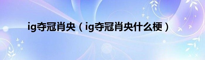 大家好,小安来为大家讲解下。ig夺冠肖央,ig夺冠肖央什么梗很多人还不知道,现在让我们一起来看看吧!