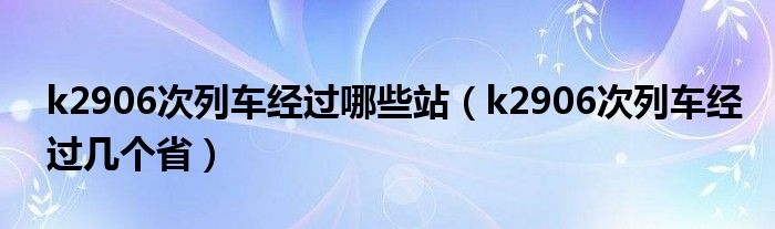 大家好,小安来为大家讲解下。k2906次列车经过哪些站,k2906次列车经过几个省很多人还不知道,现在让我们一起来看看吧!