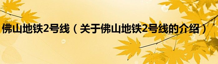 大家好,小安来为大家解答以上的问题。佛山地铁2号线,关于佛山地铁2号线的介绍很多人还不知道,现在让我们一起来看看吧!