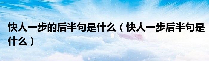 大家好,小安来为大家讲解下。快人一步的后半句是什么,快人一步后半句是什么很多人还不知道,现在让我们一起来看看吧!