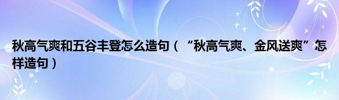 大家好,小安来为大家讲解下。秋高气爽和五谷丰登怎么造句,“秋高气爽、金风送爽”怎样造句很多人还不知道,现在让我们一起来看看吧!