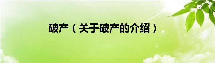 大家好,小安来为大家解答以上的问题。破产,关于破产的介绍很多人还不知道,现在让我们一起来看看吧!