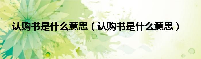 大家好,小安来为大家讲解下。认购书是什么意思,认购书是什么意思很多人还不知道,现在让我们一起来看看吧!