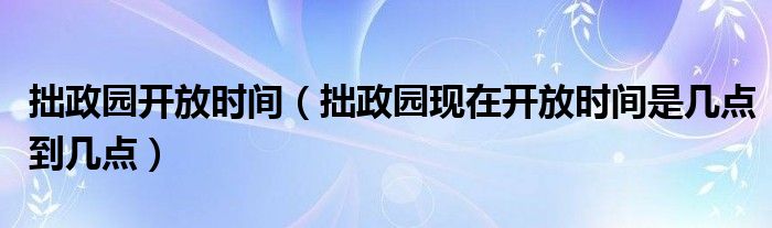 大家好,小安来为大家讲解下。拙政园开放时间,拙政园现在开放时间是几点到几点很多人还不知道,现在让我们一起来看看吧!