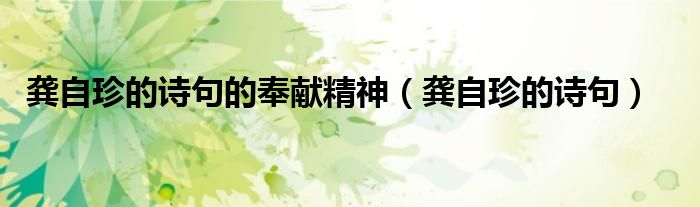 大家好,小安来为大家讲解下。龚自珍的诗句的奉献精神,龚自珍的诗句很多人还不知道,现在让我们一起来看看吧!