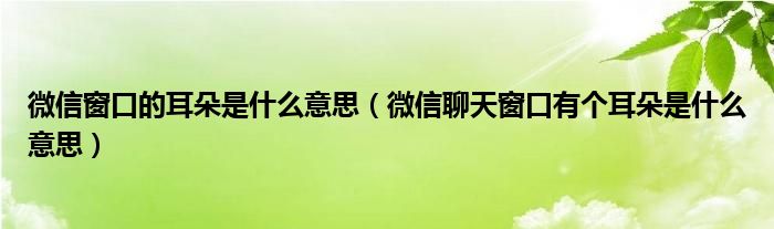 大家好,小安来为大家讲解下。微信窗口的耳朵是什么意思,微信聊天窗口有个耳朵是什么意思很多人还不知道,现在让我们一起来看看吧!