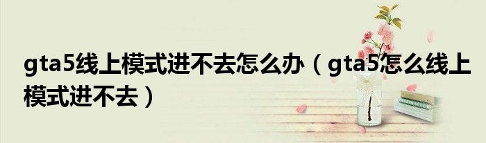 大家好,小安来为大家讲解下。gta5线上模式进不去怎么办,gta5怎么线上模式进不去很多人还不知道,现在让我们一起来看看吧!