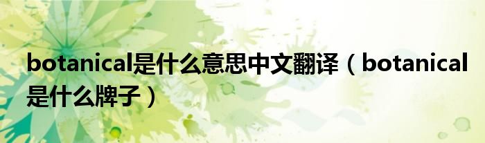 大家好,小安来为大家讲解下。botanical是什么意思中文翻译,botanical是什么牌子很多人还不知道,现在让我们一起来看看吧!