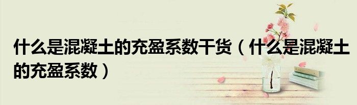 大家好,小安来为大家讲解下。什么是混凝土的充盈系数干货,什么是混凝土的充盈系数很多人还不知道,现在让我们一起来看看吧!