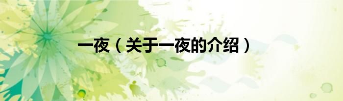 大家好,小安来为大家解答以上的问题。一夜,关于一夜的介绍很多人还不知道,现在让我们一起来看看吧!