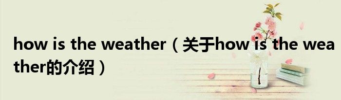 大家好,小安来为大家解答以上的问题。how is the weather,关于how is the weather的介绍很多人还不知道,现在让我们一起来看看吧!