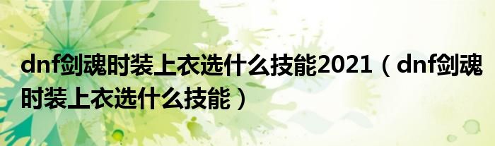 大家好,小安来为大家讲解下。dnf剑魂时装上衣选什么技能2021,dnf剑魂时装上衣选什么技能很多人还不知道,现在让我们一起来看看吧!