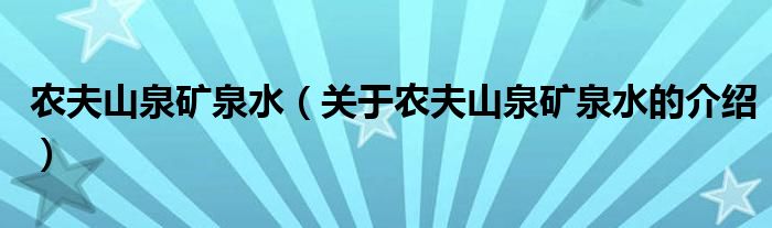 大家好,小安来为大家解答以上的问题。农夫山泉矿泉水,关于农夫山泉矿泉水的介绍很多人还不知道,现在让我们一起来看看吧!