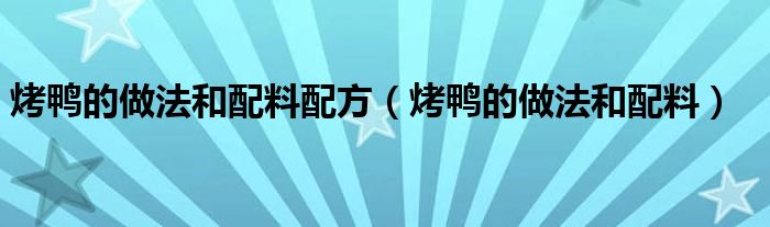 大家好,小安来为大家讲解下。烤鸭的做法和配料配方,烤鸭的做法和配料很多人还不知道,现在让我们一起来看看吧!