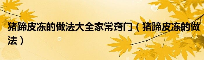 大家好,小安来为大家讲解下。猪蹄皮冻的做法大全家常窍门,猪蹄皮冻的做法很多人还不知道,现在让我们一起来看看吧!