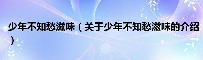 大家好,小安来为大家解答以上的问题。少年不知愁滋味,关于少年不知愁滋味的介绍很多人还不知道,现在让我们一起来看看吧!