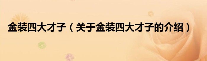 大家好,小安来为大家解答以上的问题。金装四大才子,关于金装四大才子的介绍很多人还不知道,现在让我们一起来看看吧!