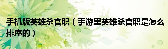 大家好,小安来为大家讲解下。手机版英雄杀官职,手游里英雄杀官职是怎么排序的很多人还不知道,现在让我们一起来看看吧!