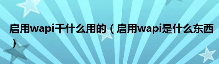 大家好,小安来为大家讲解下。启用wapi干什么用的,启用wapi是什么东西很多人还不知道,现在让我们一起来看看吧!