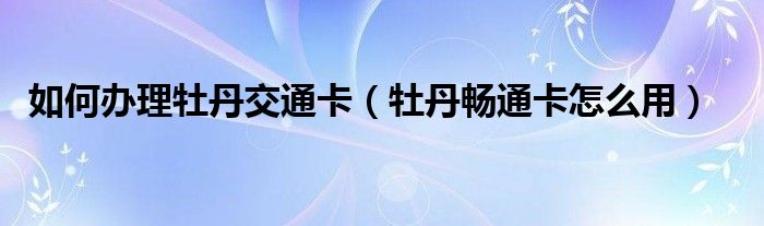 大家好,小安来为大家讲解下。如何办理牡丹交通卡,牡丹畅通卡怎么用很多人还不知道,现在让我们一起来看看吧!