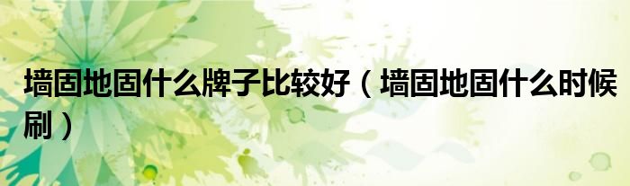 大家好,小安来为大家讲解下。墙固地固什么牌子比较好,墙固地固什么时候刷很多人还不知道,现在让我们一起来看看吧!