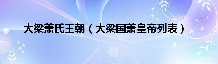 大家好,小安来为大家讲解下。大梁萧氏王朝,大梁国萧皇帝列表很多人还不知道,现在让我们一起来看看吧!
