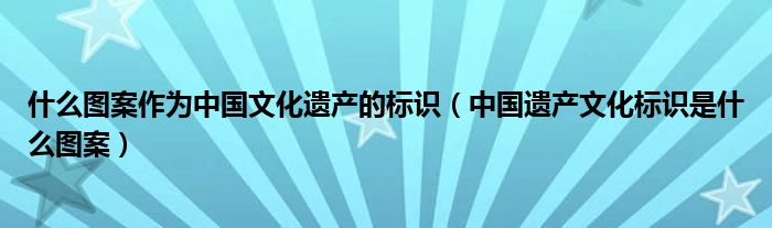 大家好,小安来为大家讲解下。什么图案作为中国文化遗产的标识,中国遗产文化标识是什么图案很多人还不知道,现在让我们一起来看看吧!