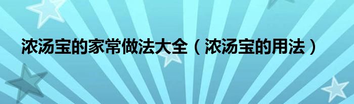 大家好,小安来为大家讲解下。浓汤宝的家常做法大全,浓汤宝的用法很多人还不知道,现在让我们一起来看看吧!