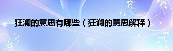 大家好,小安来为大家讲解下。狂澜的意思有哪些,狂澜的意思解释很多人还不知道,现在让我们一起来看看吧!