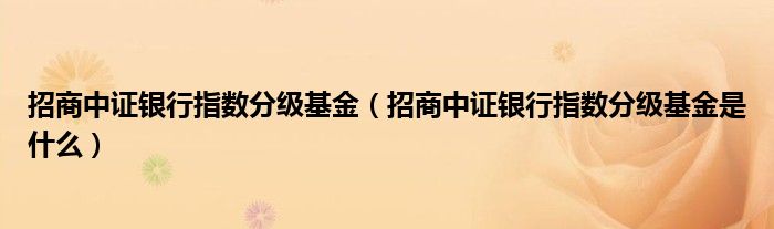 大家好,小安来为大家讲解下。招商中证银行指数分级基金,招商中证银行指数分级基金是什么很多人还不知道,现在让我们一起来看看吧!
