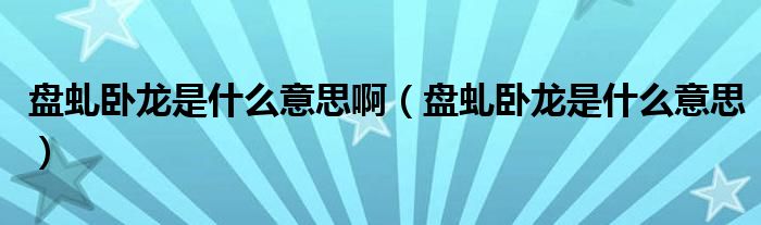 大家好,小安来为大家讲解下。盘虬卧龙是什么意思啊,盘虬卧龙是什么意思很多人还不知道,现在让我们一起来看看吧!