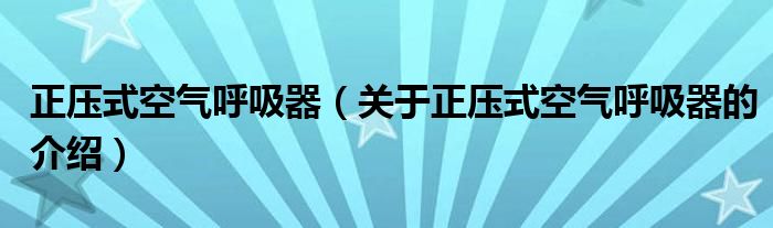 大家好,小安来为大家解答以上的问题。正压式空气呼吸器,关于正压式空气呼吸器的介绍很多人还不知道,现在让我们一起来看看吧!