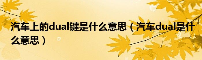 大家好,小安来为大家讲解下。汽车上的dual键是什么意思,汽车dual是什么意思很多人还不知道,现在让我们一起来看看吧!