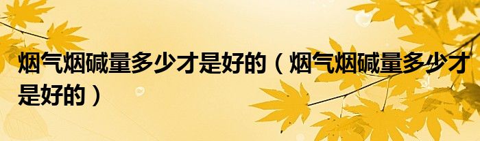 大家好,小安来为大家讲解下。烟气烟碱量多少才是好的,烟气烟碱量多少才是好的很多人还不知道,现在让我们一起来看看吧!