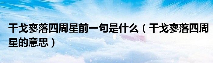 大家好,小安来为大家讲解下。干戈寥落四周星前一句是什么,干戈寥落四周星的意思很多人还不知道,现在让我们一起来看看吧!