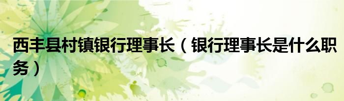 大家好,小安来为大家讲解下。西丰县村镇银行理事长,银行理事长是什么职务很多人还不知道,现在让我们一起来看看吧!