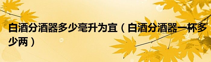 大家好,小安来为大家讲解下。白酒分酒器多少毫升为宜,白酒分酒器一杯多少两很多人还不知道,现在让我们一起来看看吧!