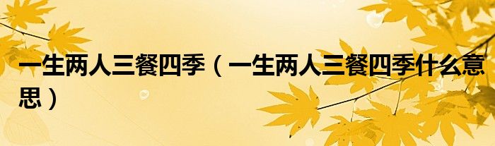 大家好,小安来为大家讲解下。一生两人三餐四季,一生两人三餐四季什么意思很多人还不知道,现在让我们一起来看看吧!