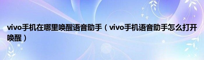 大家好,小安来为大家讲解下。vivo手机在哪里唤醒语音助手,vivo手机语音助手怎么打开唤醒很多人还不知道,现在让我们一起来看看吧!