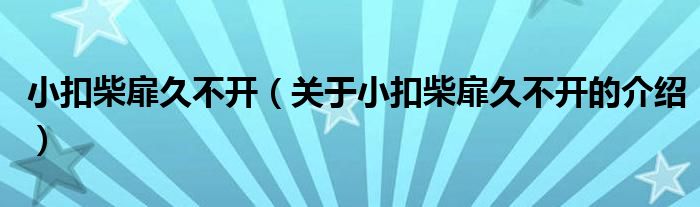 大家好,小安来为大家解答以上的问题。小扣柴扉久不开,关于小扣柴扉久不开的介绍很多人还不知道,现在让我们一起来看看吧!