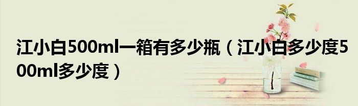 大家好,小安来为大家讲解下。江小白500ml一箱有多少瓶,江小白多少度500ml多少度很多人还不知道,现在让我们一起来看看吧!