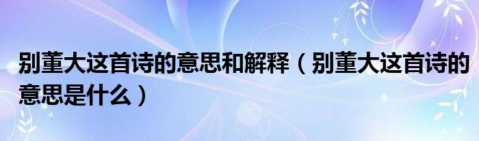大家好,小安来为大家讲解下。别董大这首诗的意思和解释,别董大这首诗的意思是什么很多人还不知道,现在让我们一起来看看吧!