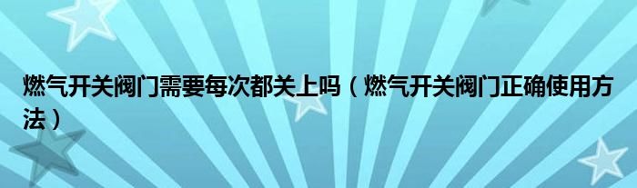 大家好,小安来为大家讲解下。燃气开关阀门需要每次都关上吗,燃气开关阀门正确使用方法很多人还不知道,现在让我们一起来看看吧!