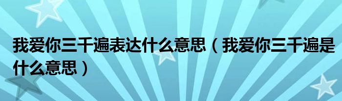 大家好,小安来为大家讲解下。我爱你三千遍表达什么意思,我爱你三千遍是什么意思很多人还不知道,现在让我们一起来看看吧!