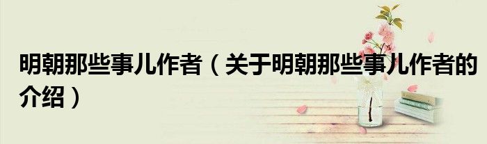 大家好,小安来为大家解答以上的问题。明朝那些事儿作者,关于明朝那些事儿作者的介绍很多人还不知道,现在让我们一起来看看吧!