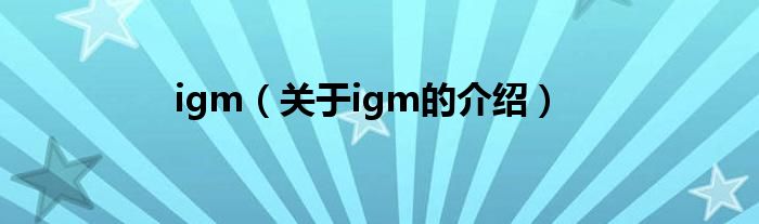大家好,小安来为大家解答以上的问题。igm,关于igm的介绍很多人还不知道,现在让我们一起来看看吧!