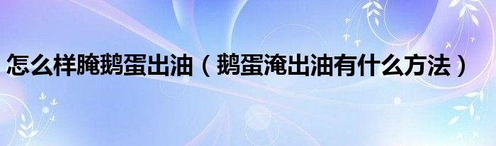 大家好,小安来为大家讲解下。怎么样腌鹅蛋出油,鹅蛋淹出油有什么方法很多人还不知道,现在让我们一起来看看吧!
