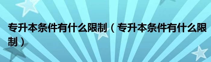 大家好,小安来为大家讲解下。专升本条件有什么限制,专升本条件有什么限制很多人还不知道,现在让我们一起来看看吧!