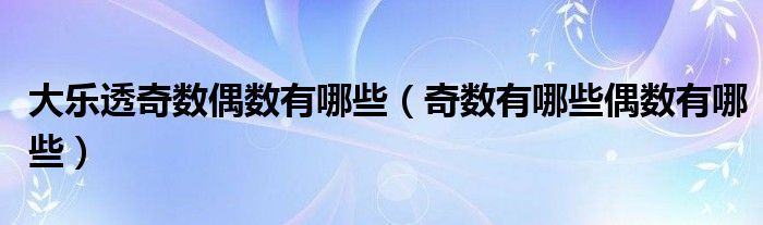 大家好,小安来为大家讲解下。大乐透奇数偶数有哪些,奇数有哪些偶数有哪些很多人还不知道,现在让我们一起来看看吧!