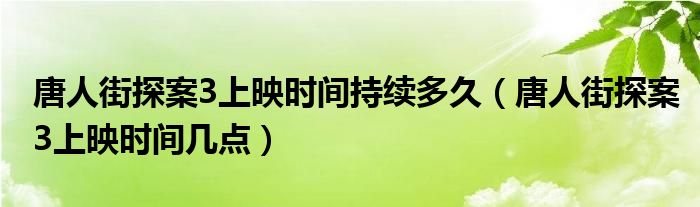 大家好,小安来为大家讲解下。唐人街探案3上映时间持续多久,唐人街探案3上映时间几点很多人还不知道,现在让我们一起来看看吧!